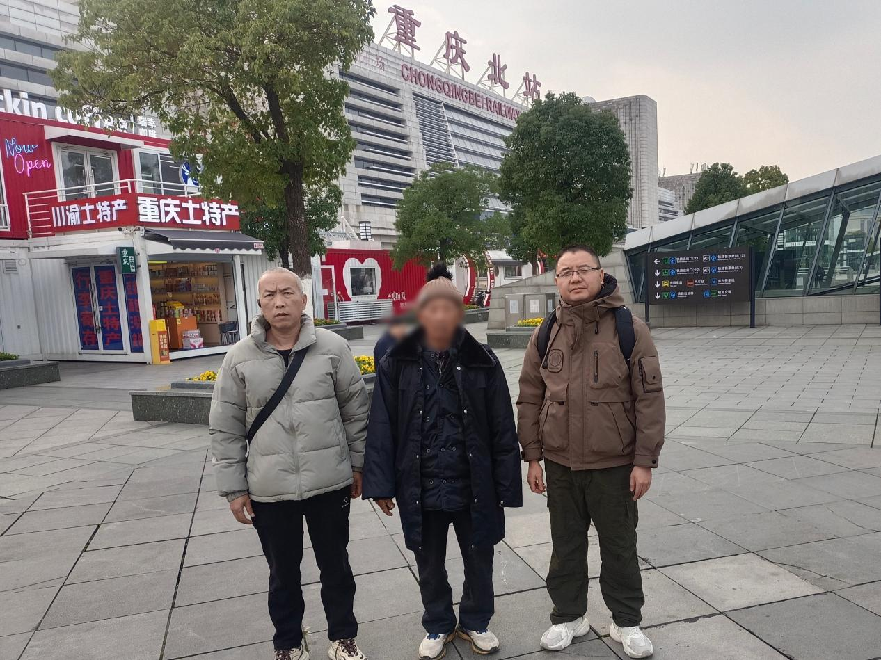 考虑到老胡年事已高,不宜独自乘坐长途交通工具,为安全起见,漳平市救助站安排专人护送其返乡。2026年1月4日,漳平市救助站工作人员陪同老胡踏上了返乡的列车。历经26小时、1500多公里的长途旅程,护送队伍于1月5日下午顺利抵达重庆市,与重庆市救助管理站完成交接工作。临别时,老胡高兴地向漳平市救助站工作人员挥手告别:“谢谢,谢谢你们送我回重庆!”