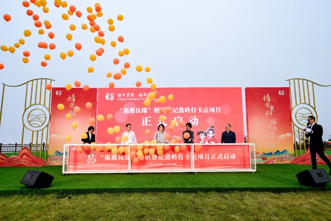 秋光潋滟,岭上情浓。活动在台湾歌手合唱《欢喜就好》的悠扬旋律中拉开序幕。随后,与会领导登台启动“福遇良缘”婚姻登记鼓岭打卡点项目。随着象征“心系鼓岭,缘定今生”的气球礼盒装置开启,鼓岭自此成为集特殊日期婚姻登记、户外浪漫颁证、特色集体婚礼等功能于一体的婚恋服务与打卡新地标,也为“美”篇章注入了新时代的婚俗文明新风。未来,这里将为新人们提供不同于传统登记大厅的独特体验,让庄严的婚姻登记仪式融入鼓岭的云海、清风与古厝之中,成为一生难忘的爱情记忆。
