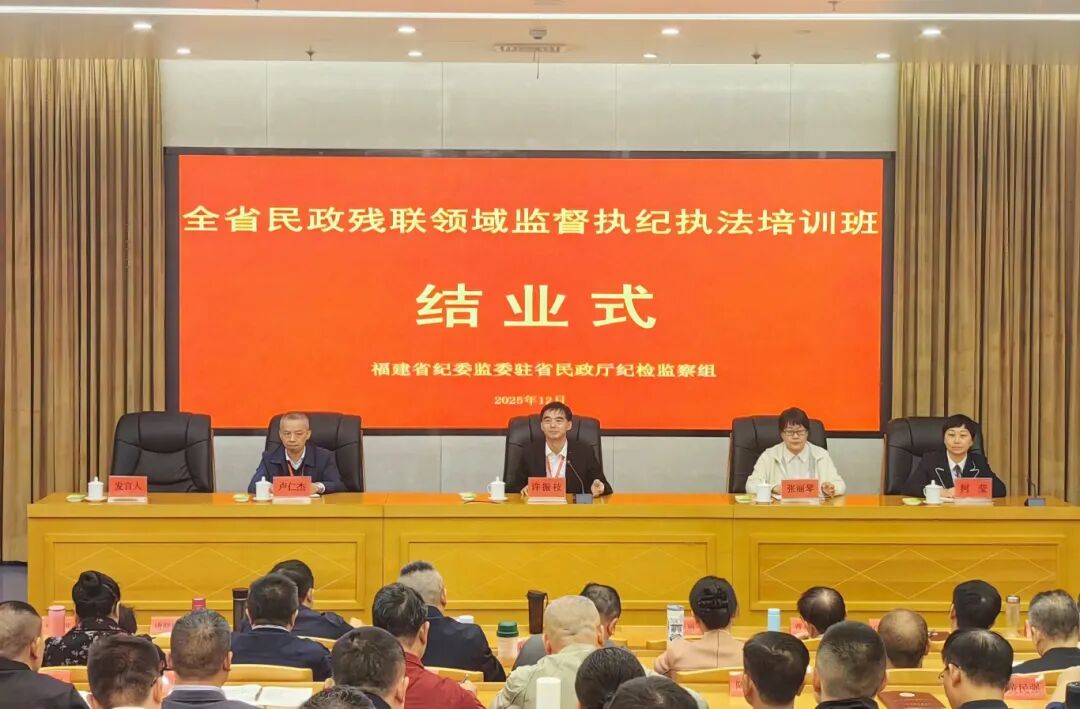12月12日,为期5天的“全省民政、残联领域监督执纪执法培训班”圆满结束。当天上午,驻省民政厅纪检监察组组长、厅党组成员许振枝出席培训班结业式并讲话。派驻省、市、县(区)三级民政、残联部门纪检监察组有关同志和省民政厅、省残联机关、直属单位纪检干部共140人参加了结业式。