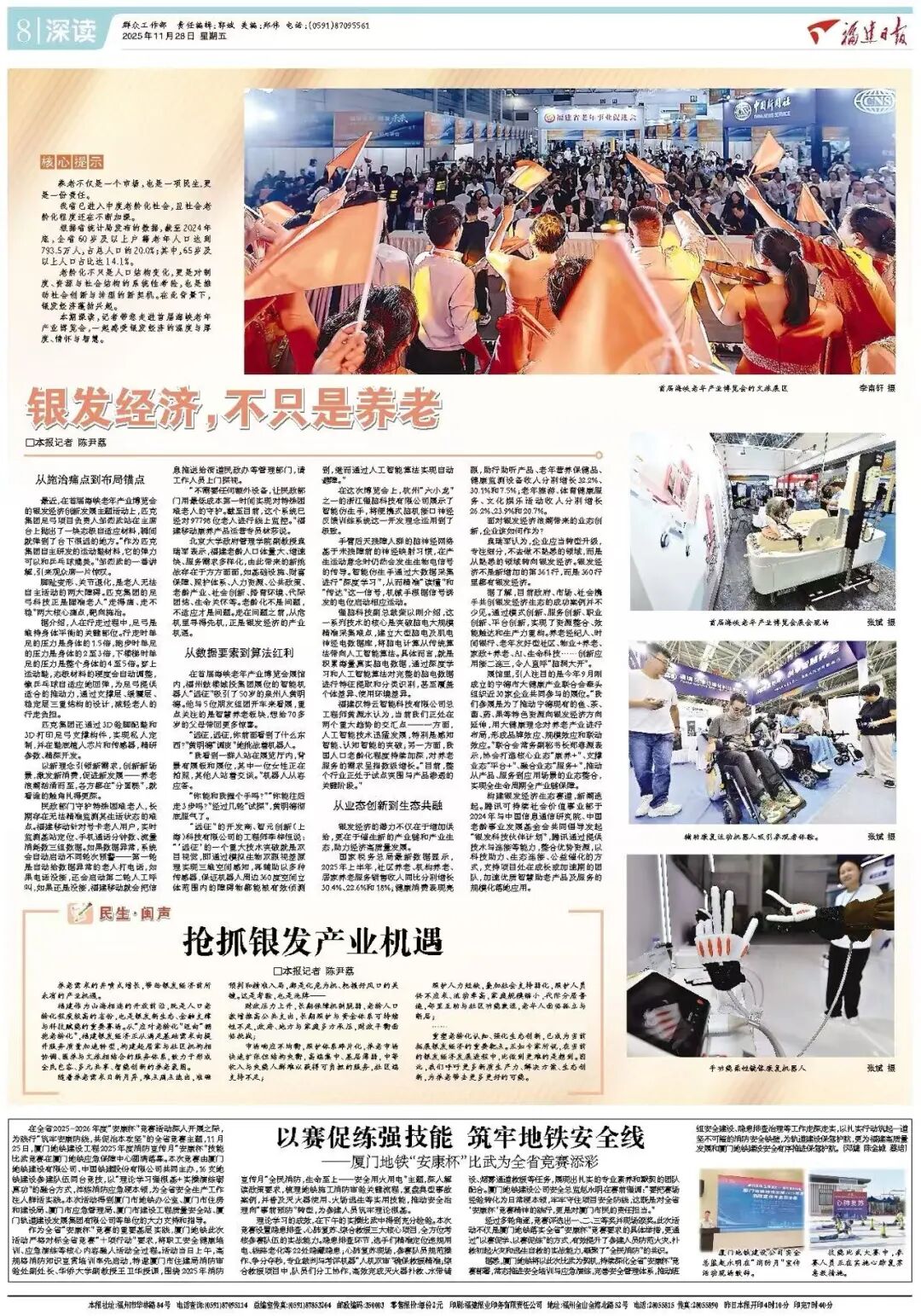 本期深读,记者带您走进首届海峡老年产业博览会,一起感受银发经济的温度与厚度、情怀与智慧。