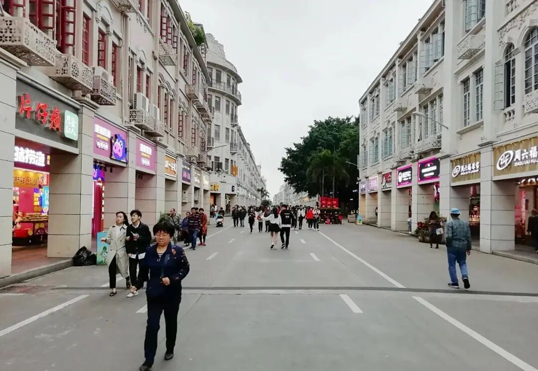 如今的中山路两旁,矗立着华侨银行大厦、东海大厦、巴黎春天百货、金鹭首饰一条街、中华城、宏辉大厦、达意商业城、金同成大厦、名汇广场等现代化高楼,沿街一楼店面主营餐饮、伴手礼、海产干货等,主要针对游客销售。