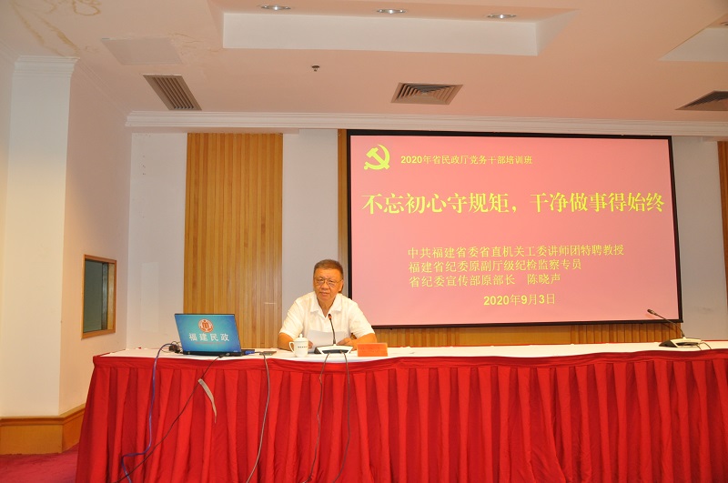 省直机关工委讲师团特聘教授、省纪委原副厅级纪检监察专员、宣传部原部长陈晓声作专题讲座