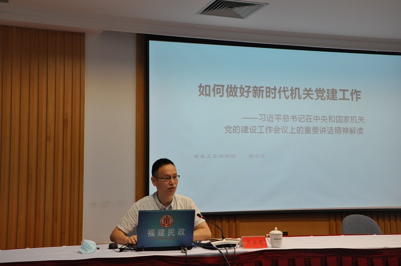为深入学习贯彻习近平新时代中国特色社会主义思想,落实习近平总书记在中央和国家机关党的建设工作会议上的重要讲话精神,不断提升机关基层党组织政治功能和组织力,推动模范机关创建工作,9月2日至4日,省民政厅在福州举办党务干部培训班。厅机关及直属单位各党支部书记、副书记、委员、党建联络员、机关党办工作人员和榕外单位党支部负责人共计60余人参加培训。