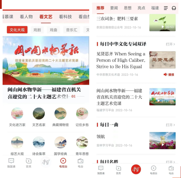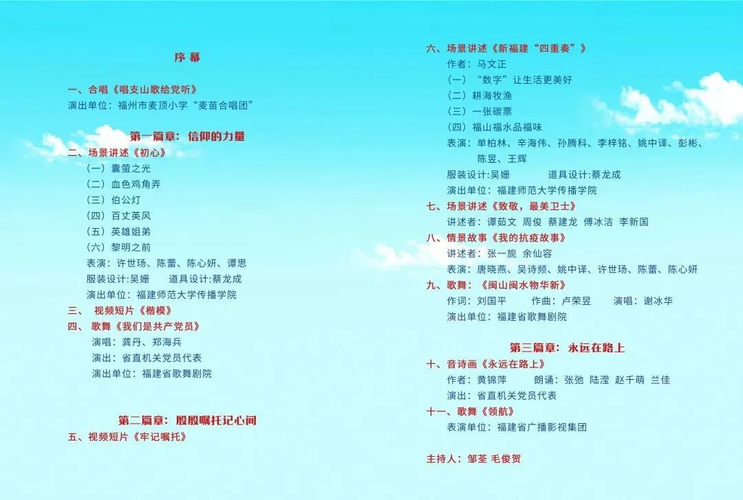 为营造喜迎党的二十大胜利召开的浓厚氛围,进一步动员引导省直机关各级党组织和广大党员传承弘扬伟大建党精神,深刻领悟“两个确立”的决定性意义,坚决做到“两个维护”,由省委省直机关工委主办,省文化和旅游厅、省广播影视集团协办的“闽山闽水物华新”省直机关喜迎党的二十大主题艺术党课于10月14日在线上演播,在省直机关和全省各地引发了强烈反响和共鸣,取得了良好的党课教育效果和政治社会效应。