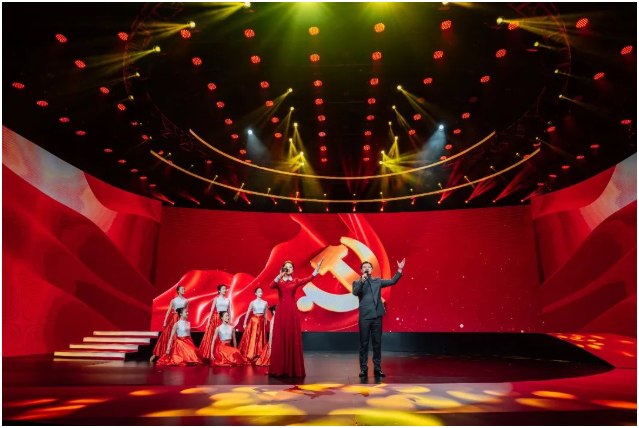 歌曲《领航》,由省直机关各单位的党员干部多场景多形式大合唱,同心齐声深情献歌伟大的党,把艺术党课进一步推向高潮。