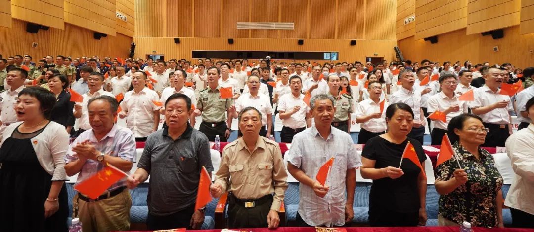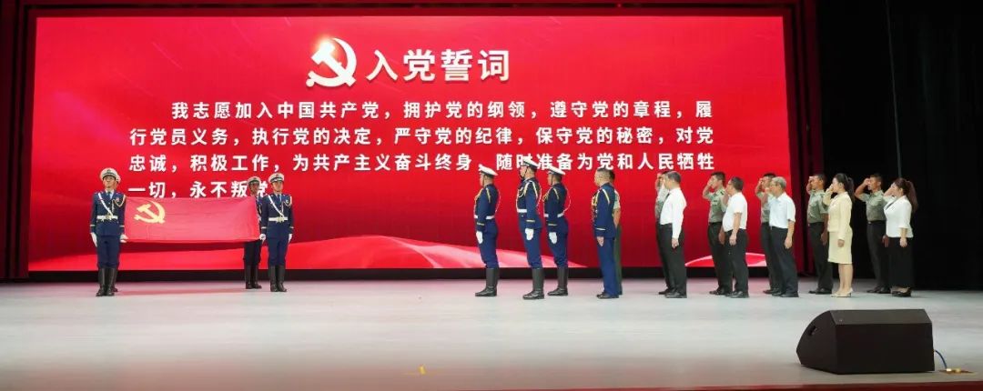 活动最后,4名消防队员,迈着坚定铿锵的步伐举着鲜艳的党旗走向舞台,全体党员重温入党誓词,表达了初心誓言,更加坚定听党话、跟党走的信心决心。