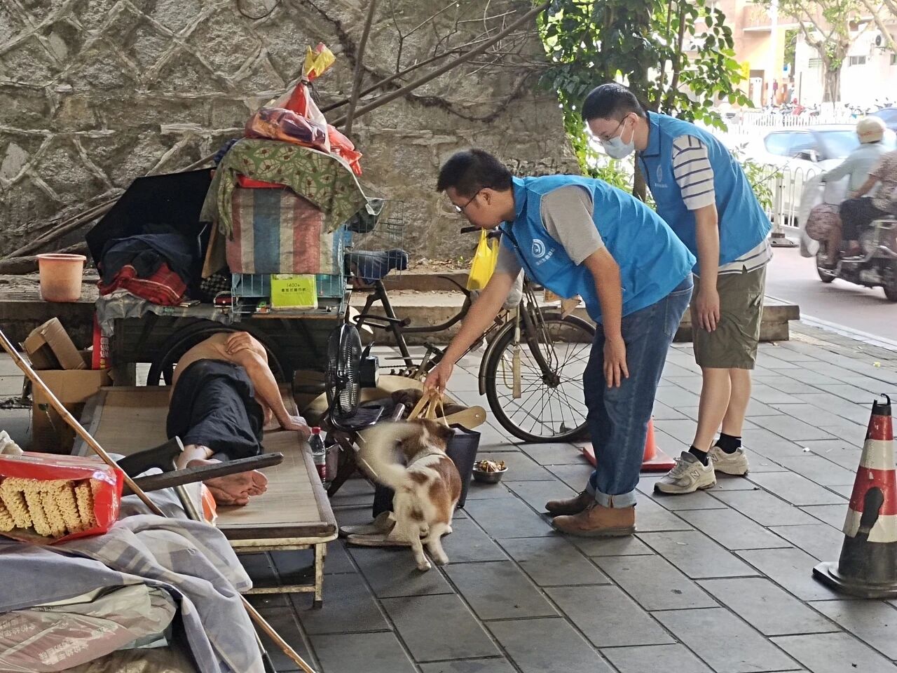 开展街面巡查时,在顺济桥下,市救助站的工作人员发现了因重度烧伤而肢体残疾的流浪乞讨人员黄某。炎炎烈日下,他正倚靠在角落避暑,周遭不时有蚊虫嗡嗡盘旋。工作人员见此情形,劝导黄某入站接受救助,耐心向其讲解基孔肯雅热的传播途径与潜在危害。工作人员还详细询问了黄某的家庭基本情况,耐心为其讲解低保、医疗救助、临时救助等惠民政策,劝导其返乡申请救助。但黄某表示泉州人民都对他非常友好和关心,自己也习惯了在泉州生活,所以暂时不打算返乡。根据“自愿救助原则”,工作人员尊重黄某个人意愿,为其发放了防暑防蚊等物品和救助引导卡。考虑到黄某的手脚不便,工作人员现场为黄某搭建蚊帐,并为黄某居住的区域进行了蚊虫消杀。黄某感慨道:“要不是你们告诉我,我真不知道蚊虫还能传播病毒,一到晚上都得被蚊虫包围,非常痛苦,太感谢你们送的蚊帐和这些东西了,我真的太需要了!”