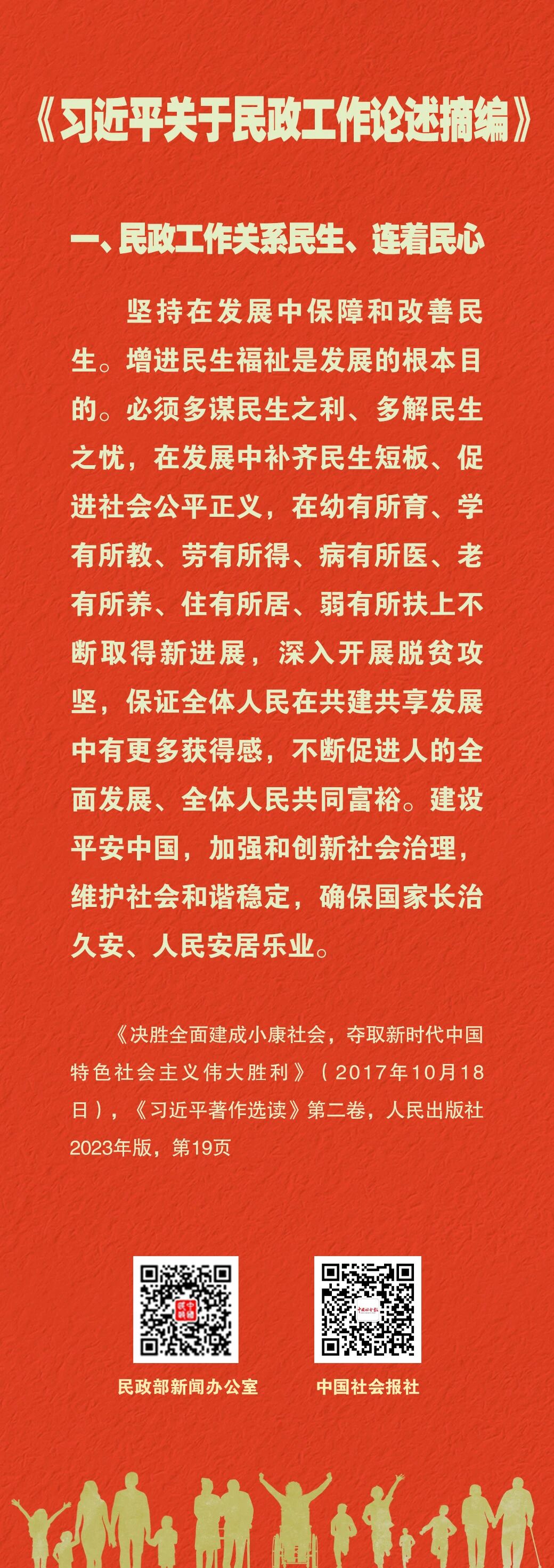 《习近平关于民政工作论述摘编》(以下简称《论述摘编》)已出版发行。《论述摘编》全面反映习近平总书记对新时代民政工作的深邃思考和重大部署,为深入学习领会习近平总书记重要论述提供了权威读本和最新教材。