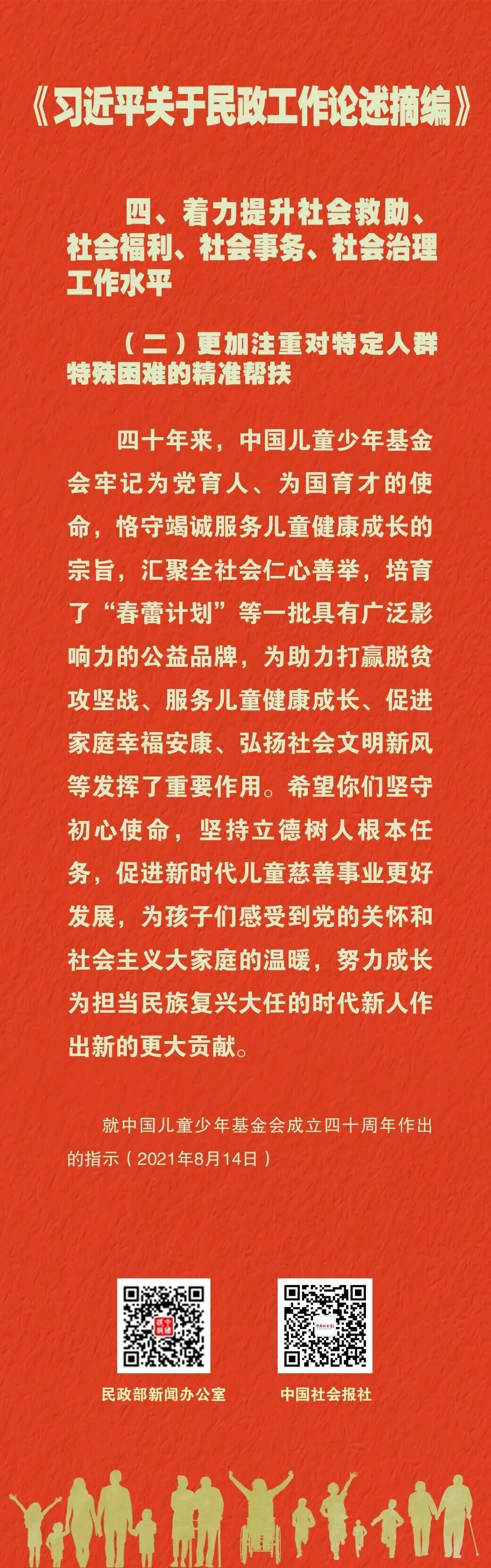《习近平关于民政工作论述摘编》(以下简称《论述摘编》)已出版发行。《论述摘编》全面反映习近平总书记对新时代民政工作的深邃思考和重大部署,为深入学习领会习近平总书记重要论述提供了权威读本和最新教材。