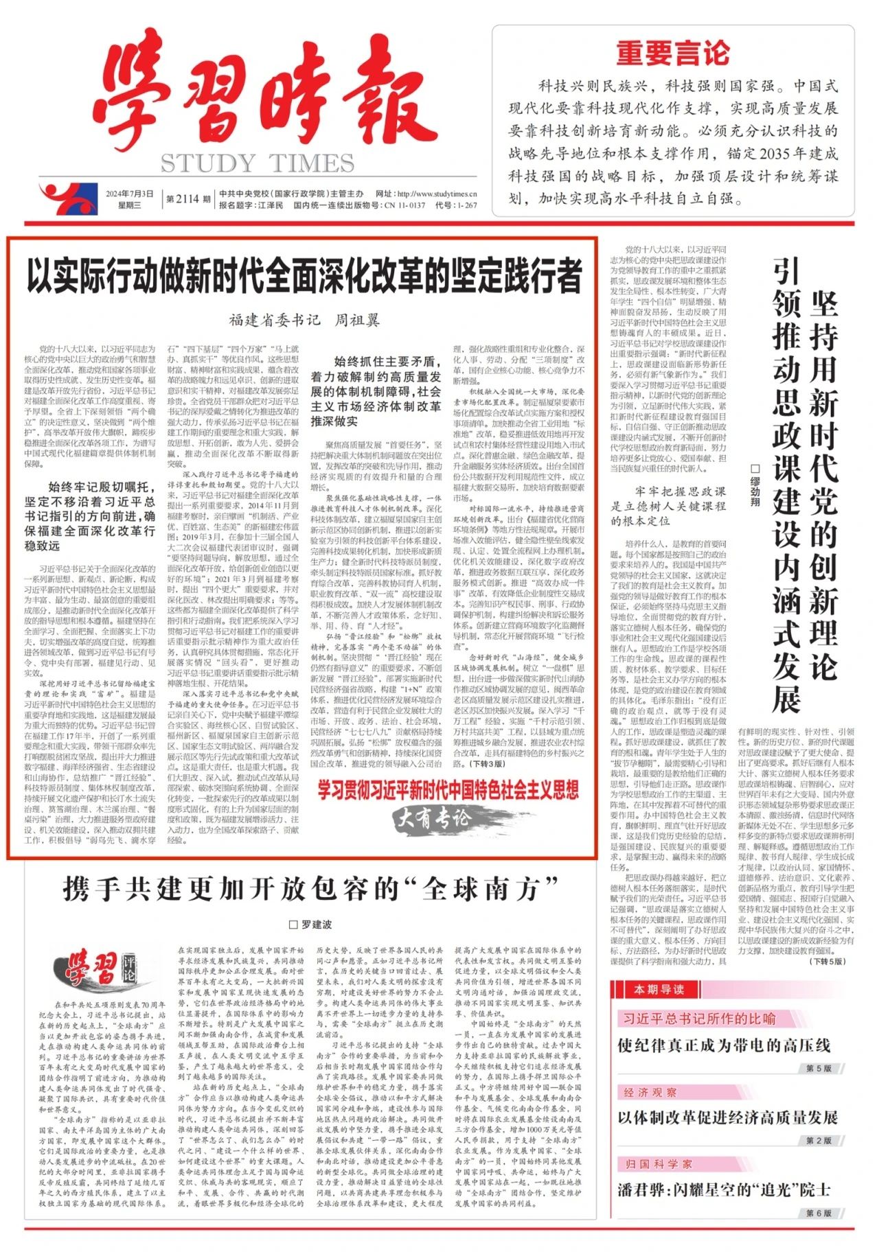 即将召开的党的二十届三中全会将对进一步全面深化改革、推进中国式现代化作出战略部署。我们要深入学习贯彻习近平总书记关于全面深化改革的一系列新思想、新观点、新论断,以勇立潮头、勇当先锋的志向和气魄,扎实做好进一步全面深化改革各项工作,奋力谱写中国式现代化福建篇章。