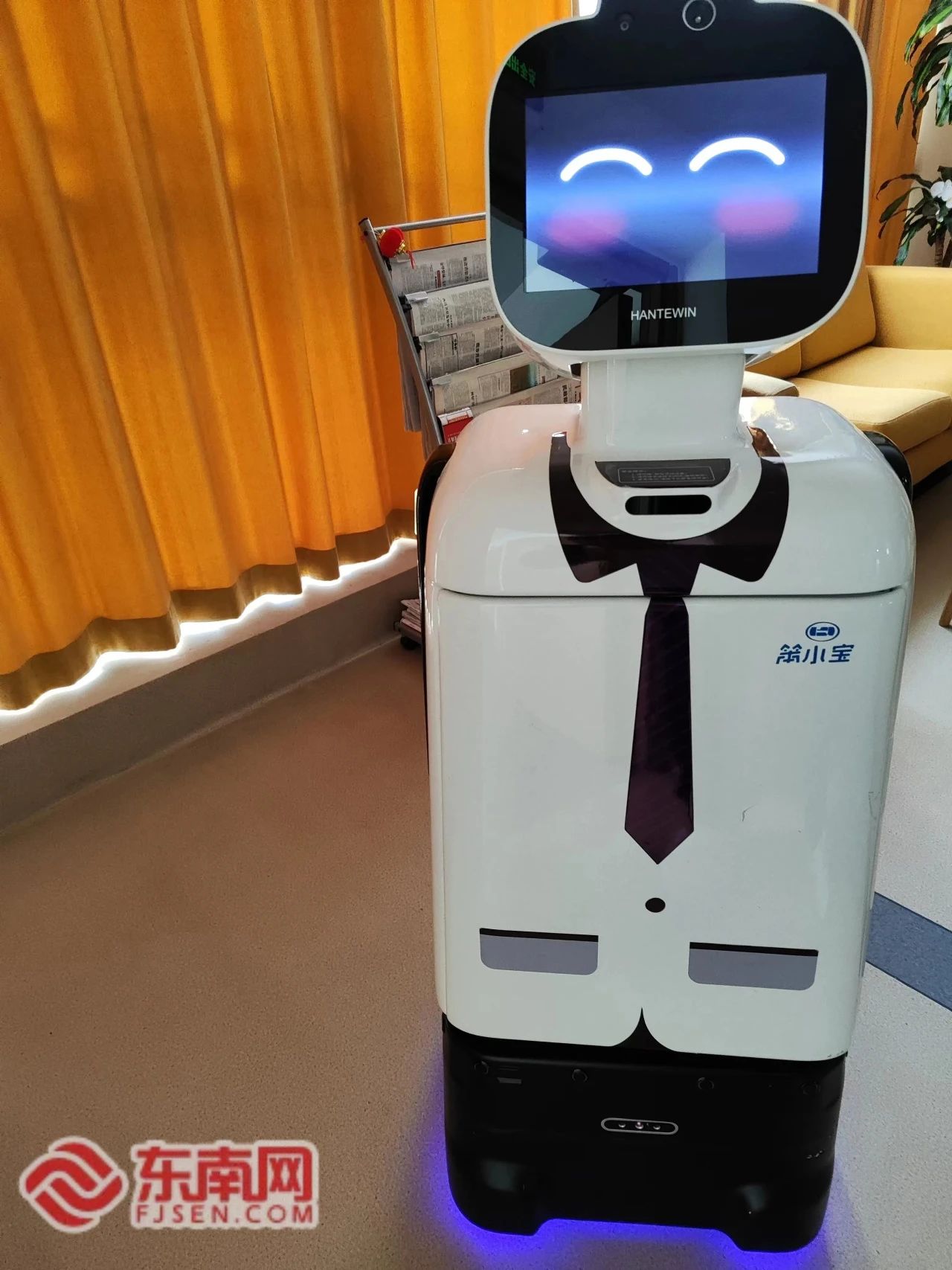 “您好,今天天气怎么样?”“今天中午餐厅吃什么?”一款名叫“笨小宝”机器人在中心内吸引了记者的注意,这款机器人是由福建本土企业研发制造,它具有智能语音对话,还能嘘寒问暖、检测体温、巡逻寻人并运送快递,工作人员介绍,它还能陪伴、问候和逗乐老人。作为一款智慧养老产品,“笨小宝”机器人服务内容涵盖了安全、健康、餐饮、文娱、社交等应用场景下的多项服务。