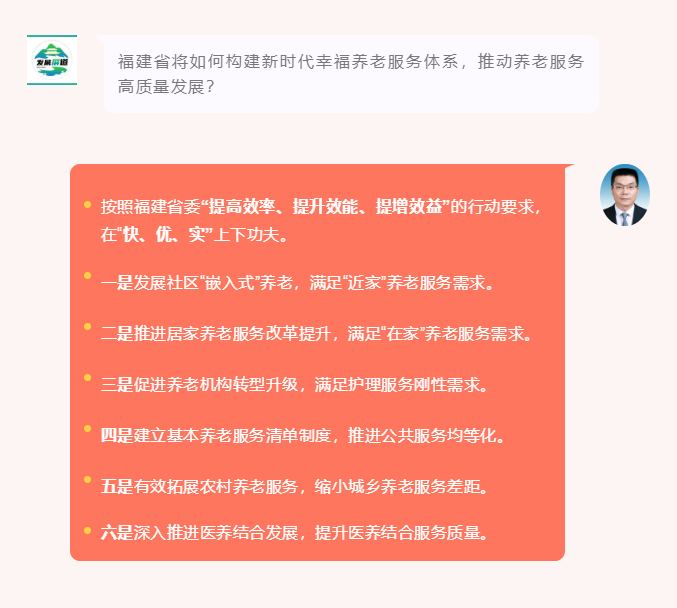 ⑤把数字技术作为推进养老服务改革的重要手段,助推打造“数智养老先进省”。进一步推广智慧健康养老应用,加快互联网与养老服务的深度融合,精准对接需求供给。促进新一代信息与通信技术在养老领域的深度。