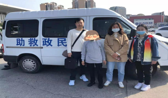 2023年3月13日救助站工作人员一行护送唐某芳踏上回家的路。经过24小时的车程,终于把唐某芳送回了家乡。在车站等候她到来的子女,时隔20多年终于见到了他们的母亲。
